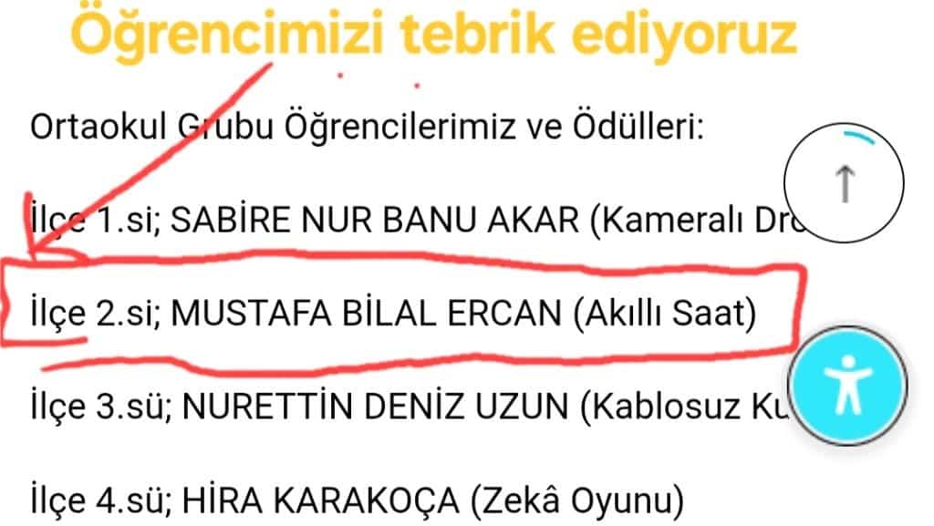 Dilimizin Zenginlikleri Projesi kapsamında ilçemizde düzenlenen Ortaokullar arası Kitap Okuma Yarışmasında 6-A sınıfından Mustafa Bilal Ercan İLÇE 2. Sİ olarak okulumuzu ve bizleri gururlandırmıştır. Öğrencilerimize teşekkür ediyor ve başarılarının devamını diliyoruz.